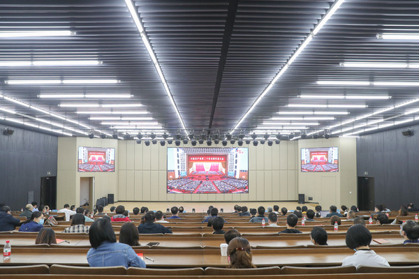 黨政領(lǐng)導班子全體成員與全體機關(guān)部門干部在圖書館B002共同收看盛會直播,各二級黨組織、校團委也組織廣大教職工、學生骨干等認真聆聽、熱議習近平總書記的報告。