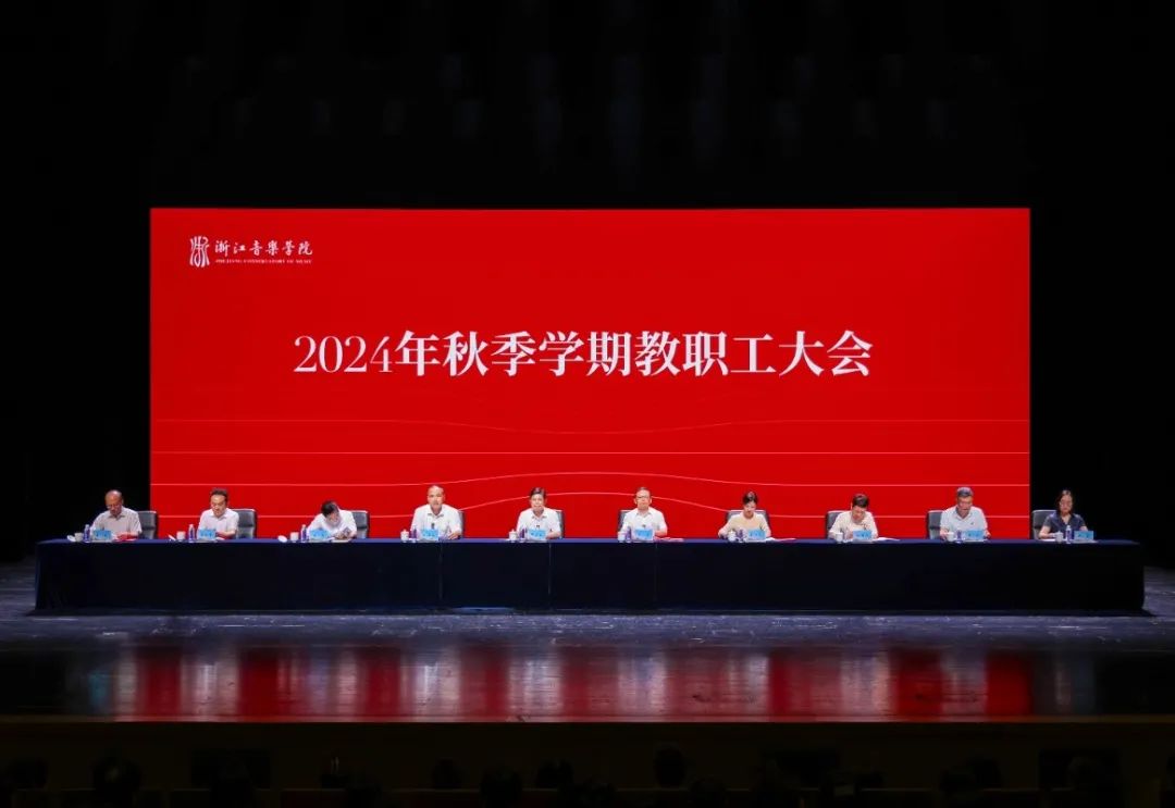 作者:孟欣 來源:辦公室、宣傳部 發(fā)布時間:2024-09-059月4日下午,浙江音樂學(xué)院2024年秋季學(xué)期教職工大會在大劇院舉行。會議深入貫徹落實(shí)二十屆三中全會和省委全會精神,系統(tǒng)總結(jié)學(xué)院上半年工作,部署落實(shí)下半年重點(diǎn)任務(wù)。黨委書記干武東講話,院長王瑞作報告。學(xué)院全體黨政班子成員出席會議,會議由黨委副書記王均寅主持。