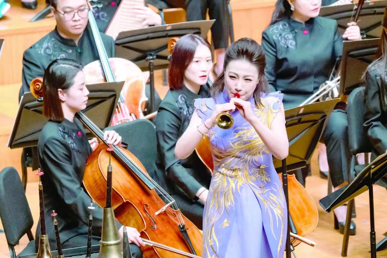 《中國故事》由指揮家金野執(zhí)棒北京民族樂團(tuán),與嗩吶演奏家張倩淵共同演出。作品靈感源于廣為流傳、膾炙人口的中國傳統(tǒng)民歌,通過嗩吶獨(dú)奏與大型民族管弦樂團(tuán)的協(xié)奏,以《東北風(fēng)》《趕牲靈》《對花》3個(gè)獨(dú)立樂章的形式呈現(xiàn)。3個(gè)樂章選取了東北、陜北、河北具有鮮明地域特色和代表性的優(yōu)秀民歌,融合多種藝術(shù)表現(xiàn)元素,構(gòu)成虛實(shí)變幻、風(fēng)格迥異、生動(dòng)鮮活的交響音畫。此次首演的嗩吶協(xié)奏曲版在保留了原汁原味民歌主題的基礎(chǔ)上,以獨(dú)奏嗩吶質(zhì)樸、動(dòng)情的宣敘和詠嘆,重塑了作品的音樂形象。作品構(gòu)建了完整的敘事結(jié)構(gòu),擴(kuò)展了獨(dú)奏樂器與大樂隊(duì)協(xié)奏的音樂表現(xiàn)深度,并以多層次的對話、交互,多側(cè)面的抒情、傾訴與展開,拓寬了交響音畫的抒情意境和敘事空間,增強(qiáng)了作品戲劇性的跌宕起伏、詩意化的浪漫情愫和交響性的多維度音樂表達(dá)。