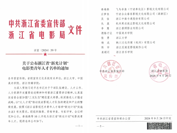 我校教師入選浙江省“新光計劃” 電影類青年人才