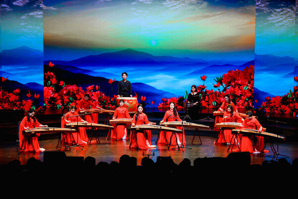 浙江理工大學(xué)民樂分團的古箏合奏《英雄贊歌》,以鏗鏘琴韻和隆隆鼓聲奏響教育征程中的英雄禮贊。指尖流淌出的不僅是音符,更是對教育征程上每一位勇毅前行者的崇高敬意。