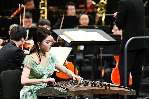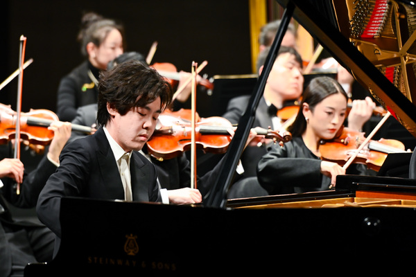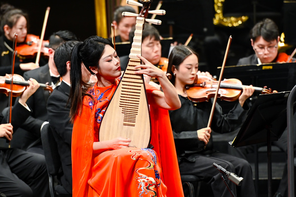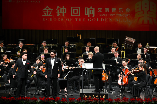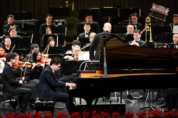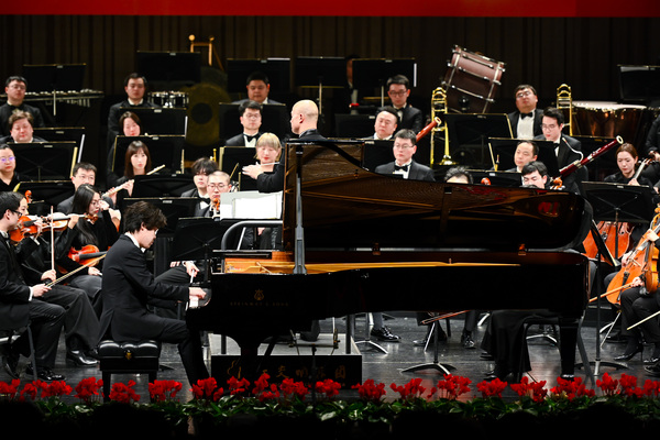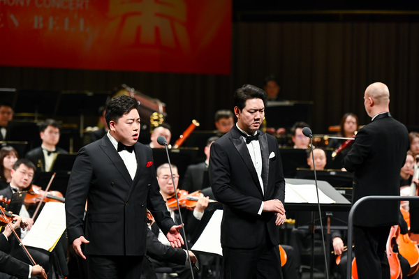 音樂會以一曲激昂的《魯斯蘭與柳德米拉》序曲激昂開篇。隨后,古箏協(xié)奏《望云賦》以清透靈動的音韻勾勒出云卷云舒的東方意境,而歌劇選段《愛永在》則以深情的旋律吟詠出真摯雋永的家國情懷。琵琶協(xié)奏《絲路飛天》以繁復(fù)的指法與豐富的音色變化,再現(xiàn)絲綢之路上的風(fēng)物與遐思。《鳥兒在風(fēng)中歌唱》以極具藝術(shù)感染力的演繹,將深切而克制的悲情浸透于每個音符之中,直抵人心;《苗嶺飛歌》則一轉(zhuǎn)情緒,以清亮悠揚(yáng)的嗓音喚醒山野間蓬勃的生命氣息,宛如晨光穿透層林。鋼琴與樂團(tuán)奏響《保衛(wèi)黃河》,鏗鏘有力的琴聲如浪潮奔涌,澎湃的激情與厚重的民族氣魄震撼人心。普羅科菲耶夫《第三鋼琴協(xié)奏曲》以現(xiàn)代性的節(jié)奏張力與抒情段落交織呈現(xiàn),展現(xiàn)出技巧與音樂的深度交融。歌劇《塞維利亞的理發(fā)師》選段《快給大忙人讓路》則以詼諧生動的舞臺表現(xiàn)與敏捷華麗的演唱,揮灑出鮮活的戲劇光彩。特別呈現(xiàn)的二重唱《恐嚇吧,激烈的言辭》(選自歌劇《命運(yùn)之力》),由兩屆“金鐘冠軍”聯(lián)袂演繹,歌聲中激蕩著命運(yùn)的對抗與交織,張力迭起,將全場情緒推向高潮。
