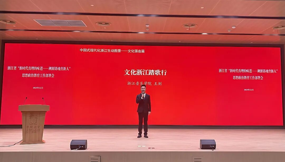 作者:舞蹈學(xué)院 來源:舞蹈學(xué)院 發(fā)布時(shí)間:2025-12-2012月11日下午,浙江省“新時(shí)代真理的味道——溯源鑄魂育新人”思想政治教育工作部署會在西湖大學(xué)順利舉行。本次會議聚焦新時(shí)代思政教育創(chuàng)新發(fā)展,旨在進(jìn)一步凝聚全省教育系統(tǒng)思政工作合力,推動思政教育提質(zhì)增效。會上,我校舞蹈學(xué)院輔導(dǎo)員王劉作為全省6位思政工作者代表之一,登臺展示思政微“金課”,向全省教育系統(tǒng)同仁分享思政教育實(shí)踐經(jīng)驗(yàn),充分展現(xiàn)了我校思政教育工作的特色與成效。