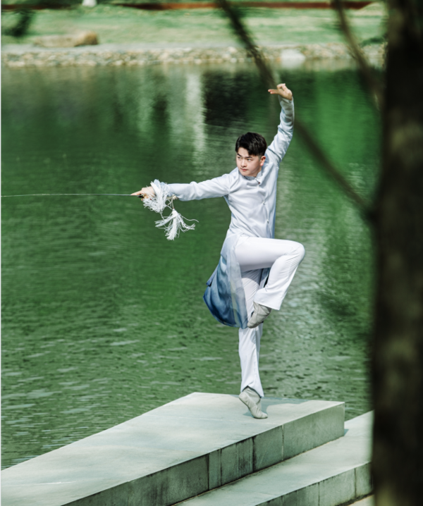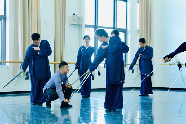 作為中國古典舞教師,袁作朦始終強(qiáng)調(diào)中國傳統(tǒng)文化的美學(xué)浸潤和為人民而舞的育人導(dǎo)向,引領(lǐng)學(xué)生不斷探索中國古典舞的身體美學(xué)與傳統(tǒng)文化精神的內(nèi)在關(guān)系。讀書時,袁作朦師從北京舞蹈學(xué)院學(xué)術(shù)委員會副主任、中國古典舞系張軍教授,深耕劍舞,其訓(xùn)練的價值在于“舞劍,實(shí)乃舞心、舞精神、舞品格”,從身體訓(xùn)練到心理感知,最終上升到“超脫自然”的藝術(shù)審美、“自強(qiáng)不息”的精神表達(dá)與人格塑造。他在課堂上強(qiáng)調(diào)“起心動念”,從動作分析中引導(dǎo)學(xué)生去想象、理解傳統(tǒng)藝術(shù)的獨(dú)特審美,以及其蘊(yùn)含的中華民族特有的哲學(xué)觀和精神品格。