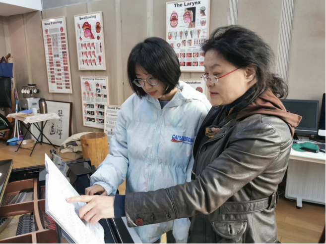 最有意思的是,每次進(jìn)入琴房,人手一本譜例,這個(gè)不是簡(jiǎn)單的一份譜子帶到琴房,而是需要靠自己折,趙老師經(jīng)常開玩笑說,譜例折的好不好就可以看出你聲樂學(xué)的好不好,折譜例不僅僅是為了學(xué)習(xí),更是教我們做人、學(xué)習(xí)都需要腳踏實(shí)地、勤勤懇懇,要有耐心,更要保持恒心。在趙老師的課堂上,我們沒有年級(jí)、師生的壁壘,她不只是以老師的身份“要求”,更是與我們一起深入探究,深入思考過后,大家可以對(duì)自己學(xué)習(xí)的感悟暢所欲言,原本只有四十分鐘的課堂大大延伸了,既能明確自己的不足,又能規(guī)避還沒有發(fā)生的錯(cuò)誤。
