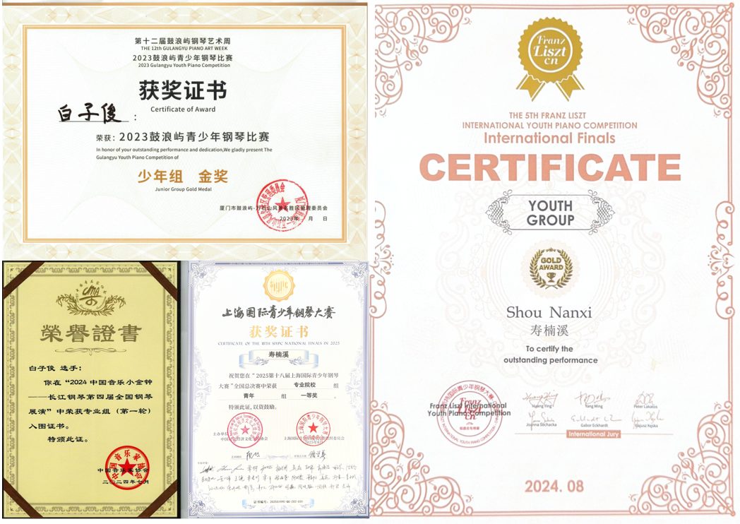 在她的悉心指導(dǎo)下,已有9名學(xué)生舉辦了個(gè)人鋼琴獨(dú)奏音樂會(huì),多人在國內(nèi)外賽事中嶄露頭角:白子俊考入中央音樂學(xué)院,并獲“第十二屆全國鼓浪嶼青少年鋼琴比賽”少年組金獎(jiǎng);壽楠溪獲“第五屆李斯特國際青少年鋼琴大賽”國際總決賽青少年組金獎(jiǎng);宗敬博以全額獎(jiǎng)學(xué)金考入美國密歇根大學(xué)安娜堡分校,并在第七屆“KAWAI亞洲鋼琴大賽”、第四屆白玉蘭國際音樂節(jié)鋼琴比賽、第十四屆上海國際青少年鋼琴大賽等比賽中斬獲佳績;胡春歌在校期間更是獲雅馬哈音樂獎(jiǎng)學(xué)金、優(yōu)秀學(xué)生學(xué)金、浙江音樂學(xué)院“優(yōu)秀畢業(yè)生”和浙江省普通高等學(xué)校“優(yōu)秀畢業(yè)生”稱號(hào),并考入德國德累斯頓音樂學(xué)院.......他們的軌跡各不相同,身上卻都有著陳小雨那份對(duì)音樂的虔誠與熱愛。