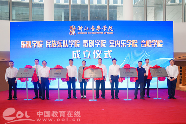 為進(jìn)一步健全優(yōu)化音樂(lè)藝術(shù)人才培養(yǎng)機(jī)制,提高人才培養(yǎng)質(zhì)量,針對(duì)音樂(lè)院校畢業(yè)生職業(yè)核心競(jìng)爭(zhēng)力不足的問(wèn)題,浙江音樂(lè)學(xué)院以“創(chuàng)新、卓越”的發(fā)展理念,率先推動(dòng)表演學(xué)科教學(xué)改革,創(chuàng)設(shè)了樂(lè)隊(duì)學(xué)院、民族樂(lè)隊(duì)學(xué)院、歌劇學(xué)院、室內(nèi)樂(lè)學(xué)院和合唱學(xué)院5個(gè)新型表演學(xué)科教學(xué)平臺(tái),建構(gòu)起校團(tuán)合作、協(xié)調(diào)聯(lián)動(dòng)的專業(yè)化的高端人才培養(yǎng)機(jī)制,開(kāi)啟學(xué)校“培養(yǎng)端”到行業(yè)“用人端”的直通車。6月18日下午,“五大學(xué)院”成立儀式隆重舉行,國(guó)內(nèi)外一流音樂(lè)家、著名專家學(xué)者匯聚浙音,共同見(jiàn)證了學(xué)生學(xué)緣結(jié)構(gòu)豐富多元、充滿創(chuàng)新活力的國(guó)際性“藝術(shù)學(xué)院”的建立。