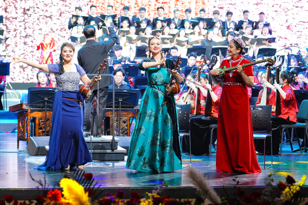 除了音樂會上半場膾炙人口的紅色經(jīng)典,還有下半場彰顯時代精神的當代佳作?!饵h的光輝照我心》中稚嫩的童聲為黨再唱山歌,民族管弦樂《大地深情》將祖國的浩瀚江河、大地磅礴深情演繹;二胡與樂隊《蔚藍》展望構(gòu)建共產(chǎn)黨百年征程的宏偉藍圖;新疆藝術劇院民族樂團的少數(shù)民族朋友們合奏的《我們新疆好地方》將本場音樂會推向最高潮;音樂會最后在鋼琴、樂隊與合唱的《新紀元》中圓滿落幕。無一不展現(xiàn)出中國共產(chǎn)黨成立后人民解放當家作主的百年征程之偉大。