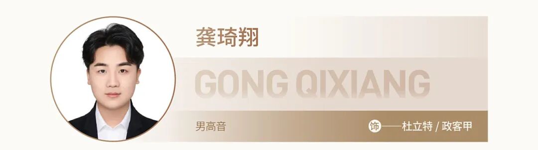 2024年6月在“世界輕歌劇音樂會(huì)”飾演輕歌劇《土匪的女兒》pietro,同場(chǎng)音樂會(huì)飾演輕歌劇《蝙蝠》中的愛森斯坦;2024年秋季以男高音考入浙江音樂學(xué)院歌劇學(xué)院,2024年底出演普契尼歌劇《圖蘭朵》飾演“L'imperatore”一角;在杭州大劇院2025年新年音樂會(huì)中再次飾演《圖蘭朵》“L'imperatore”一角。2025年在“星河呢喃”主題音樂會(huì)中飾演多尼采蒂歌劇《愛之甘醇》中的男主角nemorino角色,在“三棱鏡狂想曲”主題音樂會(huì)中分別飾演歌劇《蒂蕾西亞的瑪梅爾斯》中的lemari(丈夫)角色,歌劇《駱駝祥子》中的祥子一角。2025 年獲得“全國聲樂青音獎(jiǎng)總展演”美聲一高校組的鉑金獎(jiǎng)。