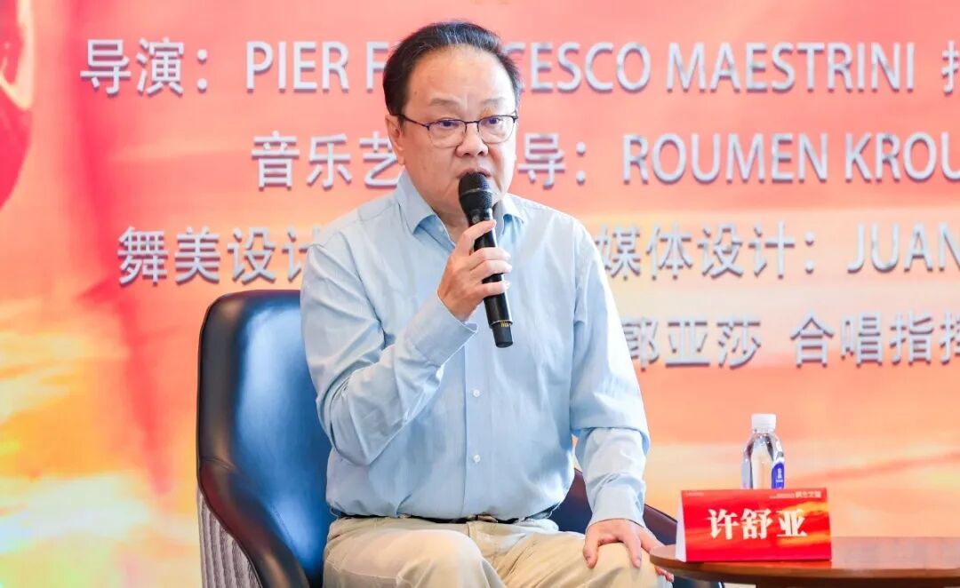 制作人、院長王瑞介紹了本劇的創(chuàng)作背景與藝術(shù)愿景,他表示,大型原創(chuàng)歌劇《戰(zhàn)士之路》以紀念中國人民抗日戰(zhàn)爭暨世界反法西斯戰(zhàn)爭勝利80周年為契機進行創(chuàng)作,用藝術(shù)這一無國界的語言,講述了中美軍民并肩抗戰(zhàn)的感人歷史。這部作品匯聚了來自中國、意大利、瑞士、西班牙、巴西的國際頂尖團隊,旨在打造一部兼具中國文化、民族精神與世界語境的藝術(shù)精品,使其不僅在國內(nèi)引發(fā)共鳴,更在海外舞臺傳遞中國故事、促進文明互鑒,充分彰顯中國為世界反法西斯戰(zhàn)爭作出的巨大貢獻。王瑞強調(diào),這部作品不僅是對歷史的深情回望,更是對先烈崇高精神的致敬,希望這部作品成為一座連接歷史與現(xiàn)實、傳遞友誼與希望的橋梁,將那段跨越國界的生死情誼和國際主義精神,那份勇氣、正義和守望相助傳承下去。