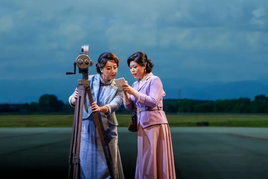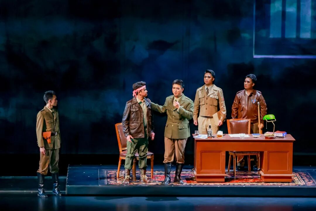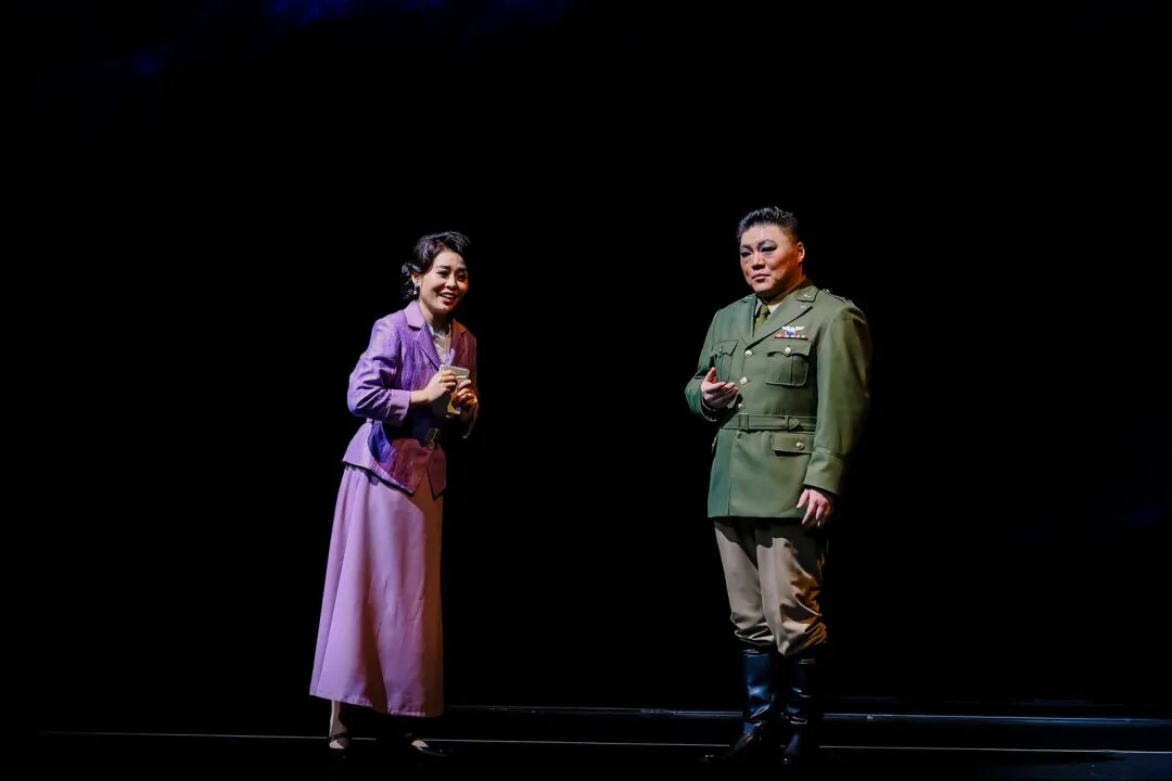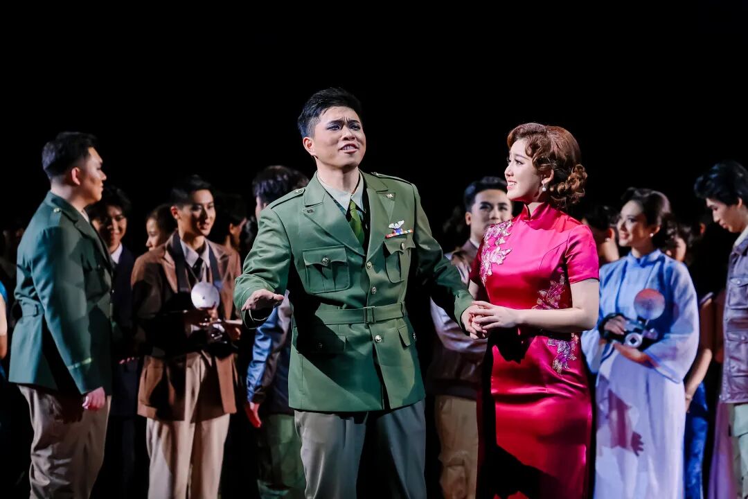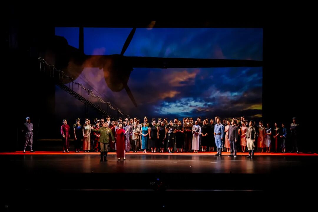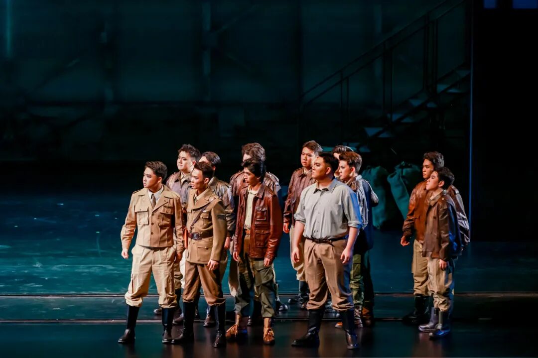 該劇對歷史人物進行了深入肌理的刻畫。飾演陳納德的男高音歌唱家韓蓬,為角色傾注了大量心血。“我深知這不僅僅是在扮演一位歷史英雄,更是在詮釋一段跨越國界的勇氣、責任與人性糾葛的史詩。”他通過大量閱讀史料、觀摩影像,觀察其走路的姿態(tài)、說話的神情、微笑的樣子,甚至“眼神中那種混合著堅毅、疲憊與執(zhí)著的獨特氣質”,力圖還原一個“有決心、有焦慮、有柔情、有反思”的復雜個體。“陳納德是一個在極端環(huán)境下,被責任、勇氣和巨大犧牲所塑造的、充滿悲劇色彩的英雄。因此在我看來,表演不在于唱出多么震撼的高音,而在于是否讓觀眾相信,舞臺上的我就是那個在歷史的十字路口,背負著沉重使命,卻依然選擇為信念而飛的‘飛虎將軍’。”