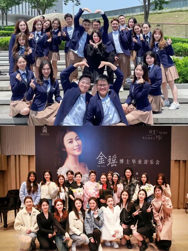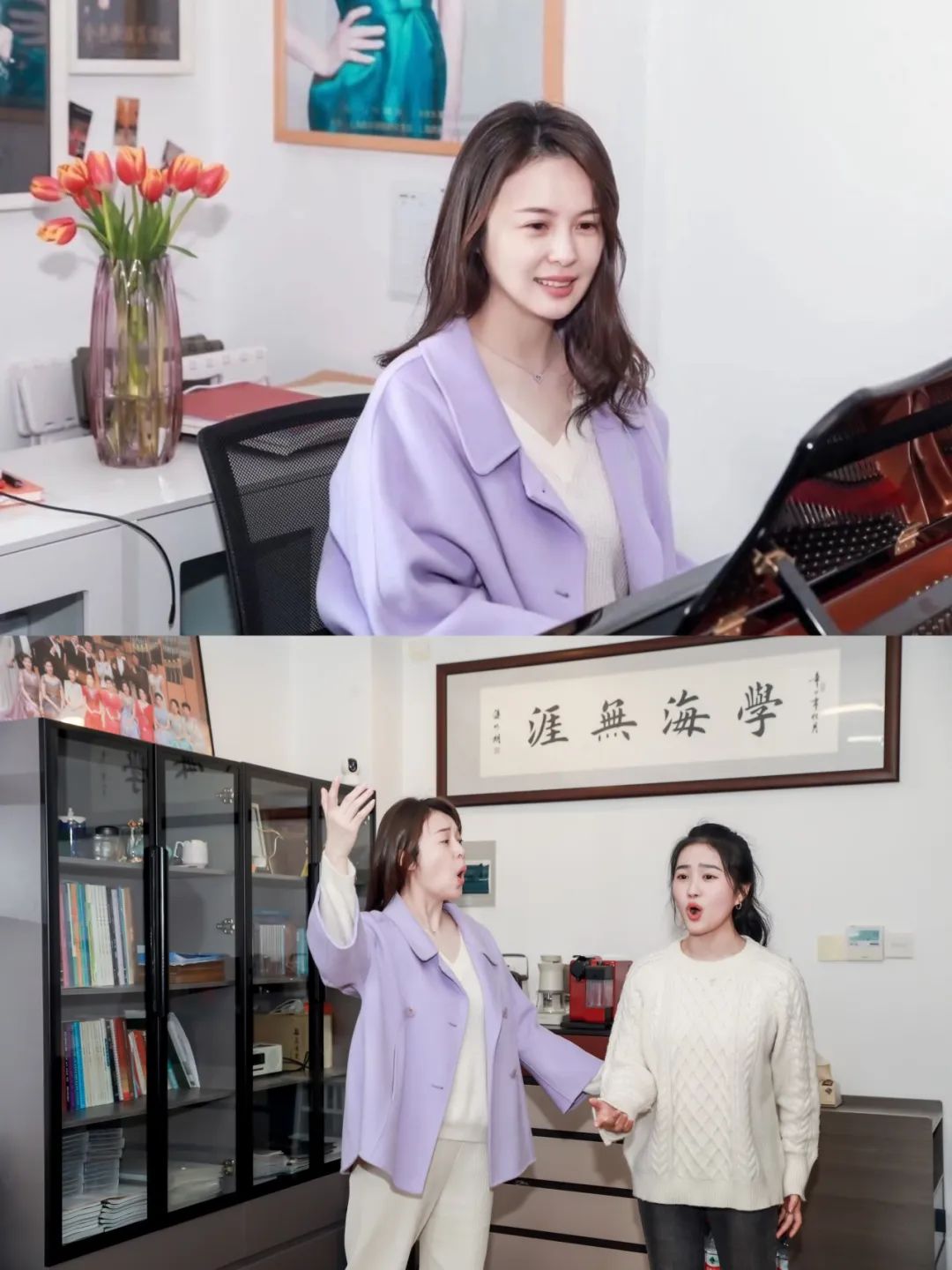 正因自己走過漫長艱辛的聲樂學(xué)習(xí)道路,如今作為人民教師,金瑤老師以身作則,對(duì)聲樂演唱有著極高的要求和嚴(yán)謹(jǐn)?shù)膽B(tài)度,是學(xué)生們學(xué)習(xí)的榜樣。在學(xué)生們看來,盡管金瑤老師非常忙碌,但她始終恪盡職守,根據(jù)每位學(xué)生不同的特點(diǎn)傳道授業(yè)解惑。“我們很心疼老師,她經(jīng)常休息時(shí)間不夠,上課高漲的熱情卻從來不減。”教學(xué)上,金瑤十分嚴(yán)苛。在課堂上,如果學(xué)生沒有達(dá)到她對(duì)聲樂演唱的心理預(yù)期,她都會(huì)停下來一遍遍給學(xué)生們做示范,帶著她們更放松自如地進(jìn)入演唱狀態(tài)。正是因?yàn)橛腥绱司ぞI(yè)業(yè)、精益求精的老師,“金家班”學(xué)生們歌譜上的筆記也都是滿滿當(dāng)當(dāng)。學(xué)生們都說,“從推開聲歌系B310教室的門,看到墻上‘學(xué)海無涯’匾額的那一刻起,就已經(jīng)把自己當(dāng)成一位成熟的歌者了。”而時(shí)不時(shí)的琴房鞭策大會(huì),也讓學(xué)生們更懂得珍惜時(shí)間,不負(fù)青春、以夢為馬,全力以赴地學(xué)好自己的專業(yè)技能。