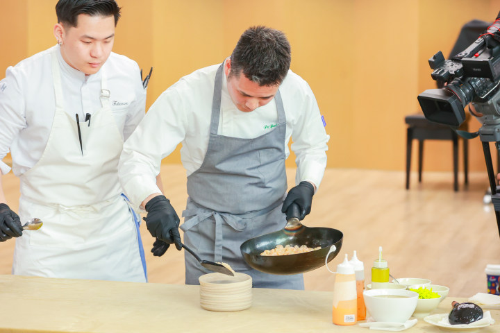 傅月良大師現(xiàn)場(chǎng)制作餐廳招牌菜——第50多版的龍井蝦仁和百花釀蝦膠,還分享了堅(jiān)持傳承創(chuàng)新杭幫菜的的心路歷程,講解菜肴背后的文化故事。