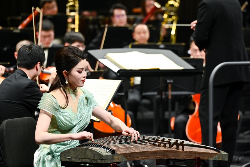 音樂會以一曲激昂的《魯斯蘭與柳德米拉》序曲激昂開篇。隨后,古箏協(xié)奏《望云賦》以清透靈動的音韻勾勒出云卷云舒的東方意境,而歌劇選段《愛永在》則以深情的旋律吟詠出真摯雋永的家國情懷。琵琶協(xié)奏《絲路飛天》以繁復的指法與豐富的音色變化,再現(xiàn)絲綢之路上的風物與遐思?!而B兒在風中歌唱》以極具藝術(shù)感染力的演繹,將深切而克制的悲情浸透于每個音符之中,直抵人心;《苗嶺飛歌》則一轉(zhuǎn)情緒,以清亮悠揚的嗓音喚醒山野間蓬勃的生命氣息,宛如晨光穿透層林。