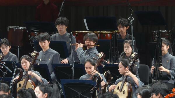 整場(chǎng)音樂(lè)會(huì)持續(xù)一個(gè)多小時(shí),以其高水平的演奏、精心的曲目編排和深刻的藝術(shù)表現(xiàn),贏得了現(xiàn)場(chǎng)觀眾的熱烈掌聲。“交響樂(lè)團(tuán)與國(guó)樂(lè)團(tuán)同臺(tái)、中西音樂(lè)對(duì)話(huà),體現(xiàn)了浙音附中開(kāi)放包容的教學(xué)理念。”浙音附中副校長(zhǎng)周展表示,“特別是幾部新作品的首演,展示了我們?cè)谕苿?dòng)原創(chuàng)音樂(lè)創(chuàng)作和傳統(tǒng)音樂(lè)創(chuàng)新發(fā)展方面的努力。”