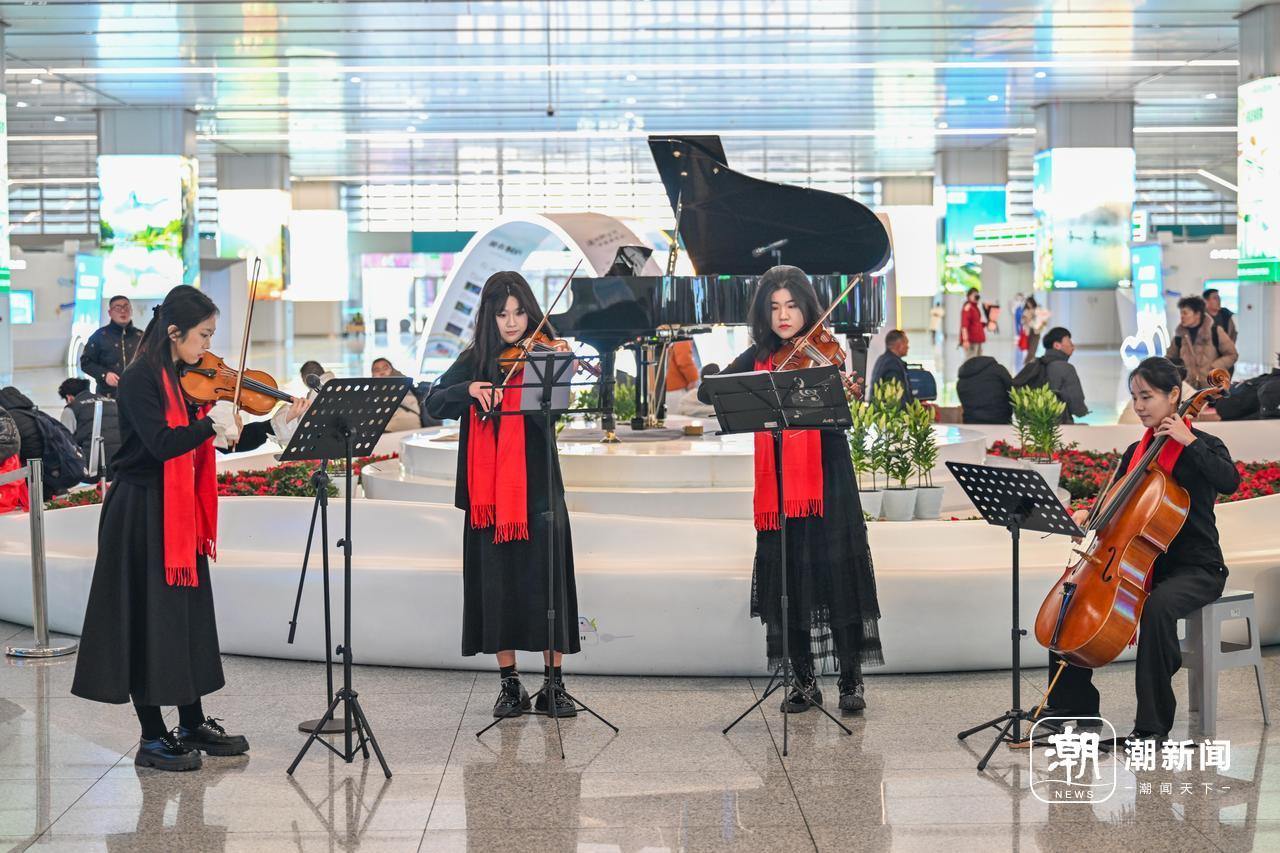12月31日,杭州西站候車(chē)大廳內(nèi),一場(chǎng)新年音樂(lè)快閃精彩上演。浙江音樂(lè)學(xué)院鋼琴系與管弦系的師生們,以悠揚(yáng)的琴聲與動(dòng)人的旋律,為匆匆往來(lái)的旅客送上了一份溫暖的新年祝福。