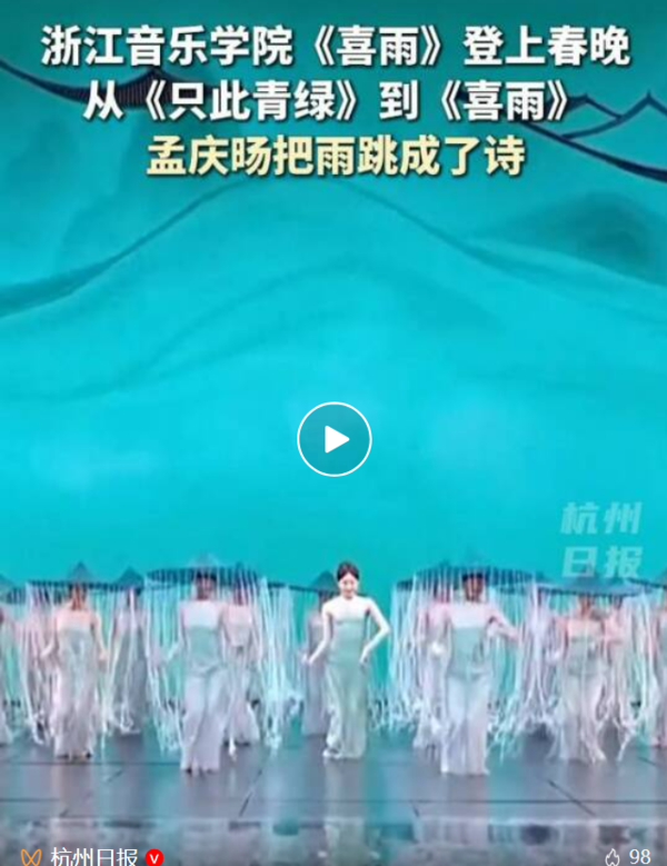 隨后,來自浙江音樂學(xué)院的舞蹈《喜雨》
