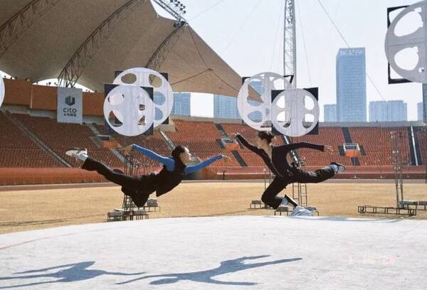 她們以凌空之姿,藝術(shù)化再現(xiàn)“雞毛換糖”的歷史傳承,描摹義烏精神乘風(fēng)騰飛的新圖景。
