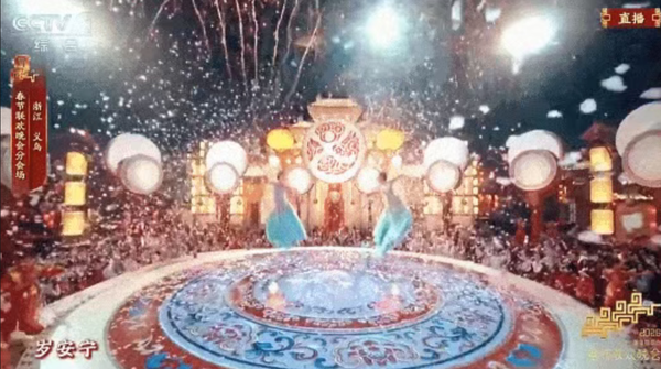 這段舞蹈通過(guò)3D威亞技術(shù),將“雞毛飛上天”的民間信念與敢闖敢試的義烏精神,轉(zhuǎn)化為鳳凰騰飛升空的藝術(shù)形式。