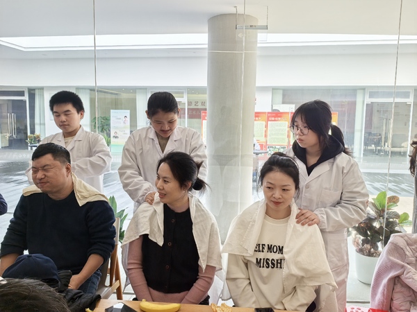 在管弦系學子為省盲校同學的音樂夢想賦能的同時,省盲校師生也回饋了真摯情感。3日下午,職高部張舟橋主任在校黨群服務中心,現(xiàn)場分享并示范了頸肩部自我推拿方法,讓大家快速掌握了日常放松的實用技能。省盲校學生通過嫻熟的推拿手法舒緩了老師們肌肉的疲憊,當音樂的熱忱遇上技能的關(guān)懷,兩校師生在互動中各展所長、互相成就,校園邊界被打破,互助之暖在彼此心間悄然傳遞。這場雙向奔赴的交流,不僅是專業(yè)知識與技能的共享,更是責任擔當與共情能力的培養(yǎng)。