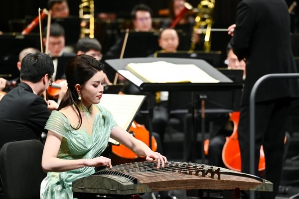音樂會(huì)以一曲激昂的《魯斯蘭與柳德米拉》序曲激昂開篇。隨后,古箏協(xié)奏《望云賦》以清透靈動(dòng)的音韻勾勒出云卷云舒的東方意境,而歌劇選段《愛永在》則以深情的旋律吟詠出真摯雋永的家國(guó)情懷。琵琶協(xié)奏《絲路飛天》以繁復(fù)的指法與豐富的音色變化,再現(xiàn)絲綢之路上的風(fēng)物與遐思。《鳥兒在風(fēng)中歌唱》以極具藝術(shù)感染力的演繹,將深切而克制的悲情浸透于每個(gè)音符之中,直抵人心;《苗嶺飛歌》則一轉(zhuǎn)情緒,以清亮悠揚(yáng)的嗓音喚醒山野間蓬勃的生命氣息,宛如晨光穿透層林。鋼琴與樂團(tuán)奏響《保衛(wèi)黃河》,鏗鏘有力的琴聲如浪潮奔涌,澎湃的激情與厚重的民族氣魄震撼人心。普羅科菲耶夫《第三鋼琴協(xié)奏曲》以現(xiàn)代性的節(jié)奏張力與抒情段落交織呈現(xiàn),展現(xiàn)出技巧與音樂的深度交融。歌劇《塞維利亞的理發(fā)師》選段《快給大忙人讓路》則以詼諧生動(dòng)的舞臺(tái)表現(xiàn)與敏捷華麗的演唱,揮灑出鮮活的戲劇光彩。特別呈現(xiàn)的二重唱《恐嚇吧,激烈的言辭》(選自歌劇《命運(yùn)之力》),由兩屆“金鐘冠軍”聯(lián)袂演繹,歌聲中激蕩著命運(yùn)的對(duì)抗與交織,張力迭起,將全場(chǎng)情緒推向高潮。