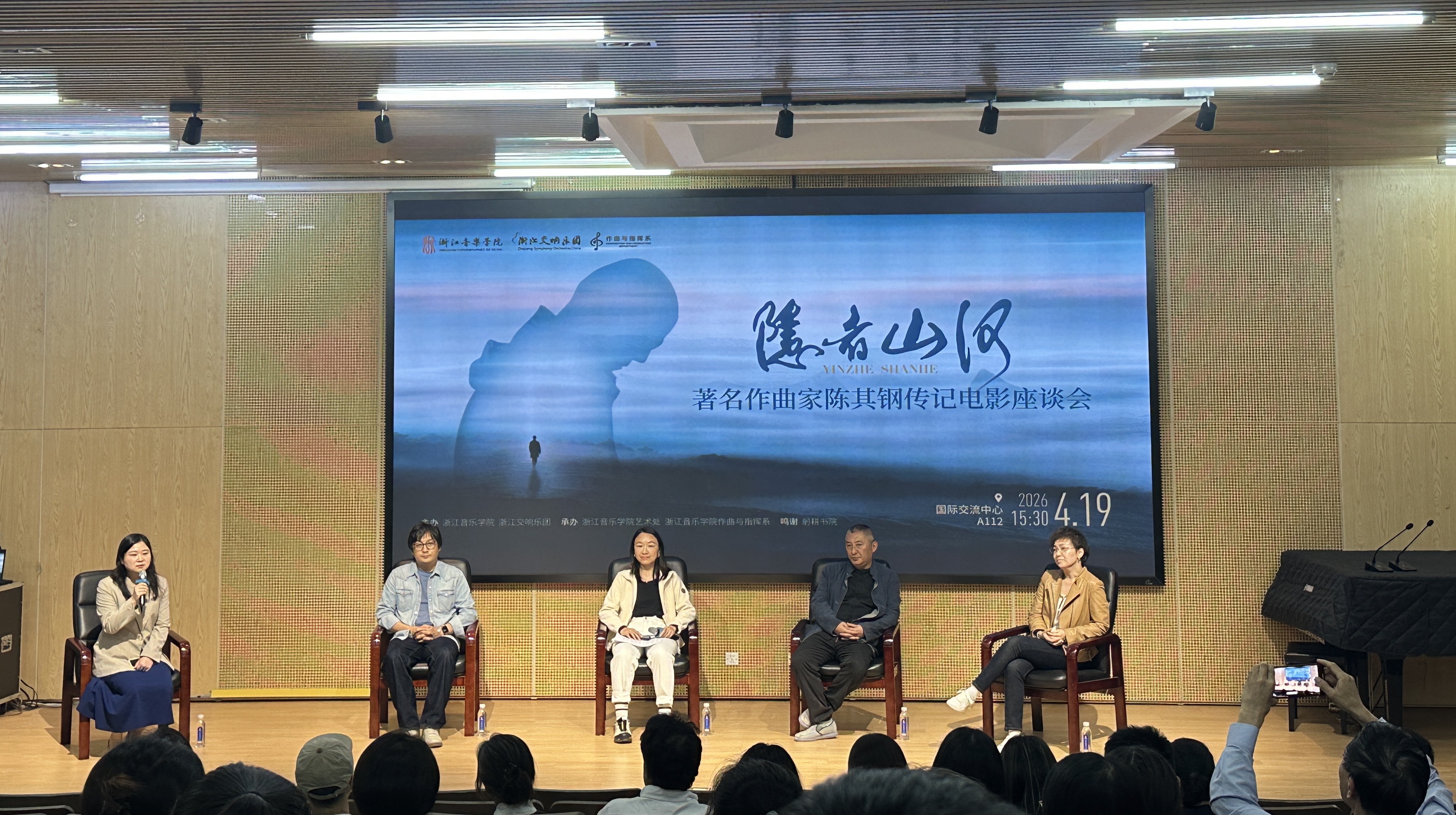當(dāng)天下午,傳記電影《隱者山河》在大劇院上映。該片由導(dǎo)演郭旭鋒耗時(shí)7年攝制,以6個(gè)樂章的散文詩式結(jié)構(gòu),展現(xiàn)了陳其鋼的藝術(shù)與人生。作為法國作曲大師梅西安的關(guān)門弟子,陳其鋼在東西方音樂交匯中不斷突破,曾在2008年北京奧運(yùn)會等重大活動中擔(dān)任音樂總監(jiān),并在浙江遂昌躬耕書院、回歸自然。影片以詩意的鏡頭語言記錄了藝術(shù)家對初心的堅(jiān)守,引發(fā)觀眾共鳴。影片結(jié)束后,召開映后座談會。導(dǎo)演郭旭鋒、作家胡卉、躬耕書院創(chuàng)始人戴建軍及浙江交響樂團(tuán)駐團(tuán)作曲家鄔娜參與討論,由作曲與指揮系副主任張澤藝主持。與會嘉賓圍繞影片創(chuàng)作、陳其鋼的隱者心境及當(dāng)代音樂家的精神歸途展開交流。音樂學(xué)系教授李鵬程、作曲與指揮系教授欽麗麗,以及作曲與指揮系青年教師徐飛洋、音樂教育學(xué)院青年教師蔣驍然等分享了學(xué)術(shù)見解,現(xiàn)場師生觀眾積極互動,氣氛熱烈。