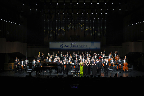 當(dāng)晚,陳其鋼作品專場音樂會在音樂廳上演。由指揮家周杰、錢駿平、張藝分別執(zhí)棒浙音民族室內(nèi)樂團(tuán)、室內(nèi)管弦樂團(tuán)及浙江交響樂團(tuán),聯(lián)袂演繹《三笑》《走西口》、小提琴協(xié)奏曲《悲喜同源》等作品,展現(xiàn)東西方音樂交融之美。流行音樂系青年教師葉炫清演唱主題曲《夢團(tuán)圓》。演出尾聲,藝術(shù)總監(jiān)張藝返場加演《我和你》,將現(xiàn)場氣氛推向高潮。