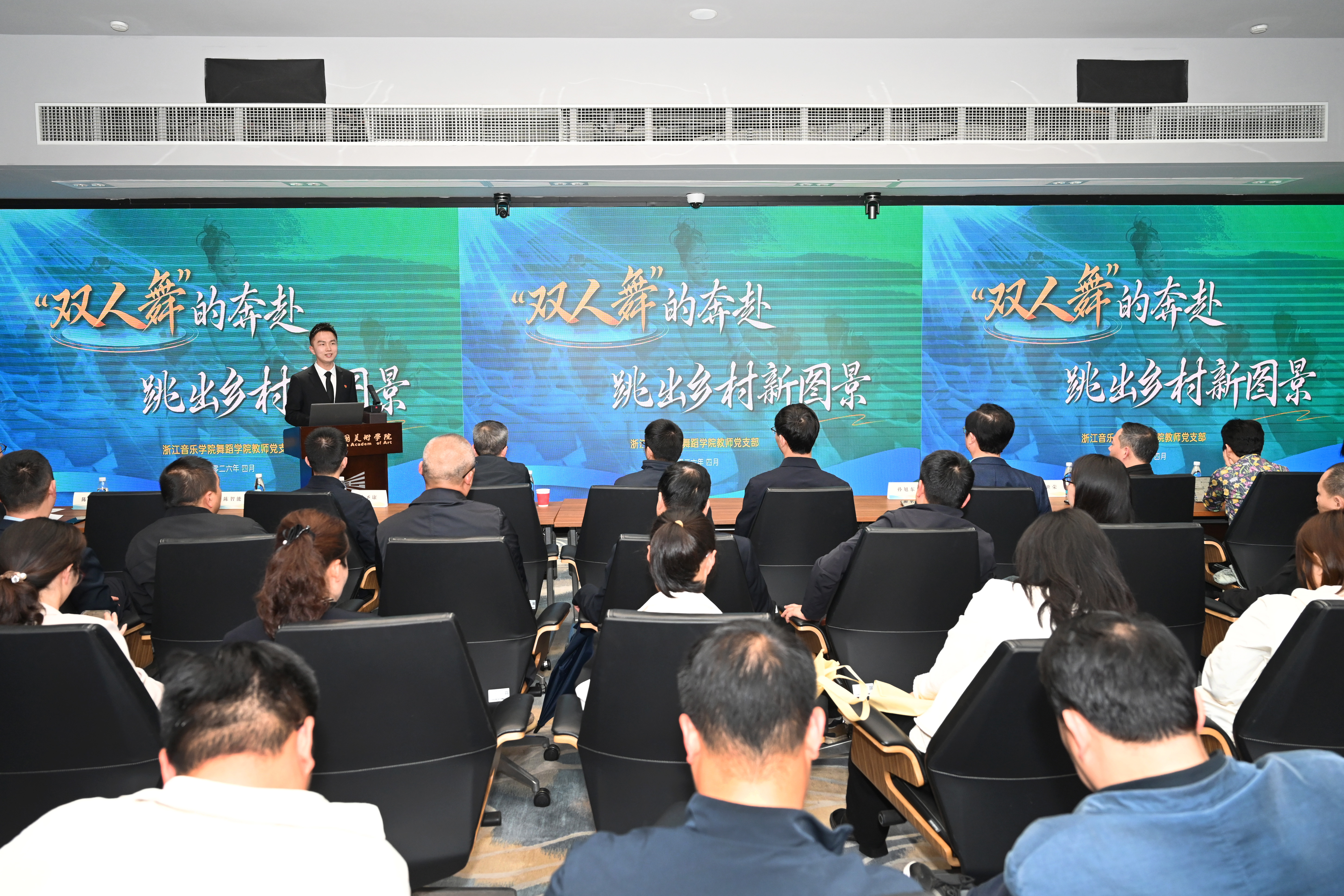 舞蹈學(xué)院教師黨員王劉在活動(dòng)現(xiàn)場(chǎng)進(jìn)行專(zhuān)題分享,并與參訓(xùn)村書(shū)記開(kāi)展面對(duì)面的意向洽談與精準(zhǔn)對(duì)接。分享中,王劉生動(dòng)講述了支部與何家村“以舞為媒、結(jié)緣共建”的溫暖故事。支部充分發(fā)揮專(zhuān)業(yè)優(yōu)勢(shì),以“藝術(shù)村長(zhǎng)”駐村、打造“文化年夜飯”、開(kāi)設(shè)“公益舞蹈課”三大舉措為抓手,將舞臺(tái)搬進(jìn)茶園,把美育種進(jìn)心田,成功探索出一條藝術(shù)喚醒鄉(xiāng)土、文化賦能產(chǎn)業(yè)的特色振興之路。