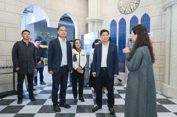 簽約儀式前,干武東一行參觀考察了M511光影匯8K多功能沉浸探索空間《深空未來(lái)》、VR體驗(yàn)項(xiàng)目《永恒的巴黎圣母院》、環(huán)境音樂劇《茶無(wú)此人》、未來(lái)影城以及古建與非遺特展、歷史經(jīng)典產(chǎn)業(yè)傳承創(chuàng)新主題展等。