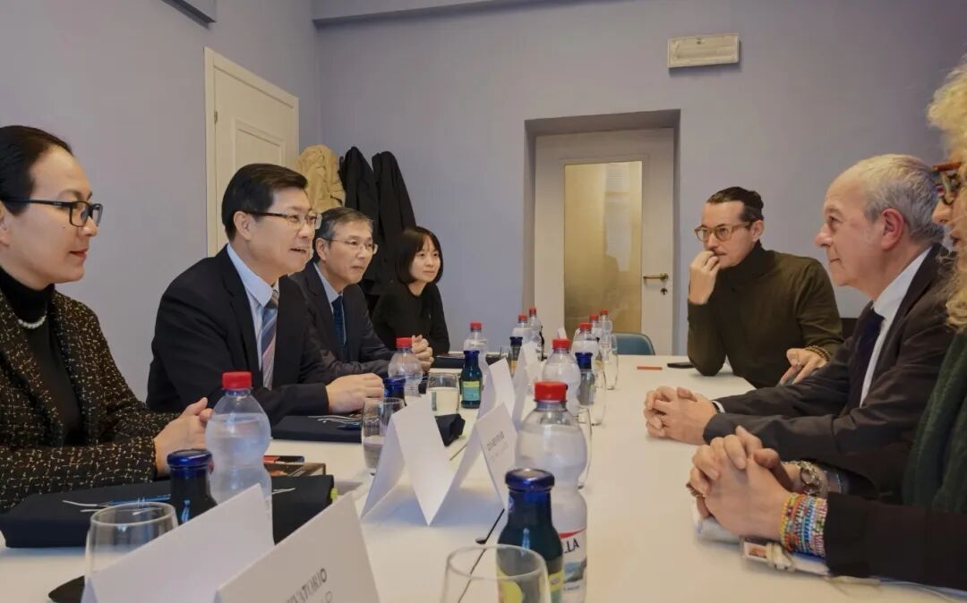 代表團在訪問意大利米蘭威爾第音樂學院期間受到了熱情接待。米蘭音樂學院院長馬西米利亞諾·巴喬教授陪同參觀了學校圖書館、音樂廳等場館。會談期間,馬西米利亞諾·巴喬向代表團介紹了計劃于明年在中國上演的歌劇《圖蘭朵》,表達了希望與浙江音樂學院加強歌劇創(chuàng)演合作的意愿。干武東表示,意大利作為歌劇發(fā)源地,其藝術資源與浙音的創(chuàng)演優(yōu)勢互補,將為師生提供更廣闊的實踐平臺,兩校在歌劇人才培養(yǎng)、劇目創(chuàng)作與演出等方面有著廣闊的合作空間,通過合作可以整合雙方優(yōu)勢資源,共同提升歌劇藝術水平。