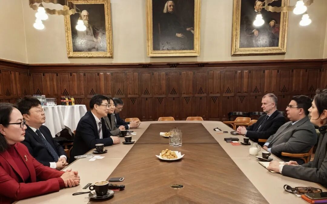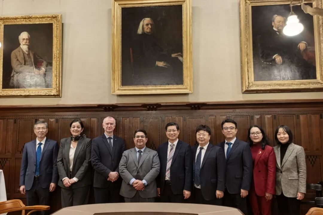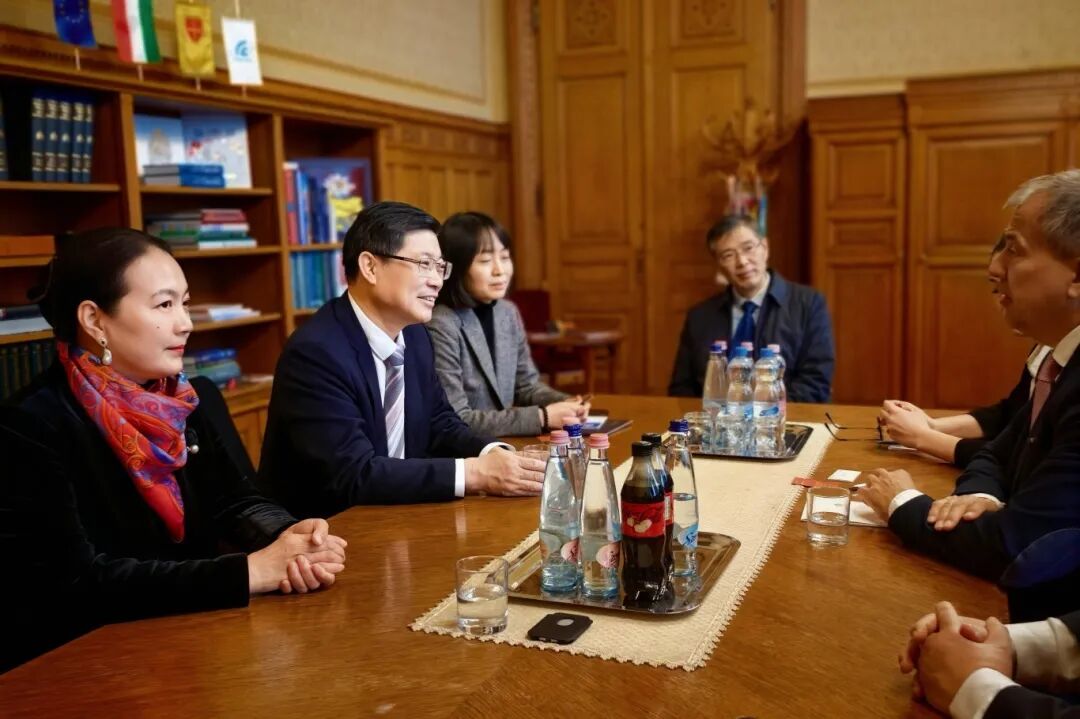 在匈牙利訪問期間,代表團還拜會了匈牙利國會副議長歐拉·勞約什博士,并考察了布達佩斯中國文化中心。在與歐拉·勞約什副議長會談時,干武東表示,浙江音樂學院始終致力于擔當文明交流互鑒的使者,希望通過與匈牙利羅蘭大學和李斯特音樂學院的深入合作,構建貫通式人才協同培養(yǎng)體系,推動學術與藝術融合創(chuàng)新,為中匈音樂文化交流注入新的動力。歐拉·勞約什表示,浙音與李斯特音樂學院在辦學理念和人才培養(yǎng)目標上高度契合,兩校的全方位合作將共同構建富有活力的音樂教育共同體,他將努力促成兩校的深度合作。