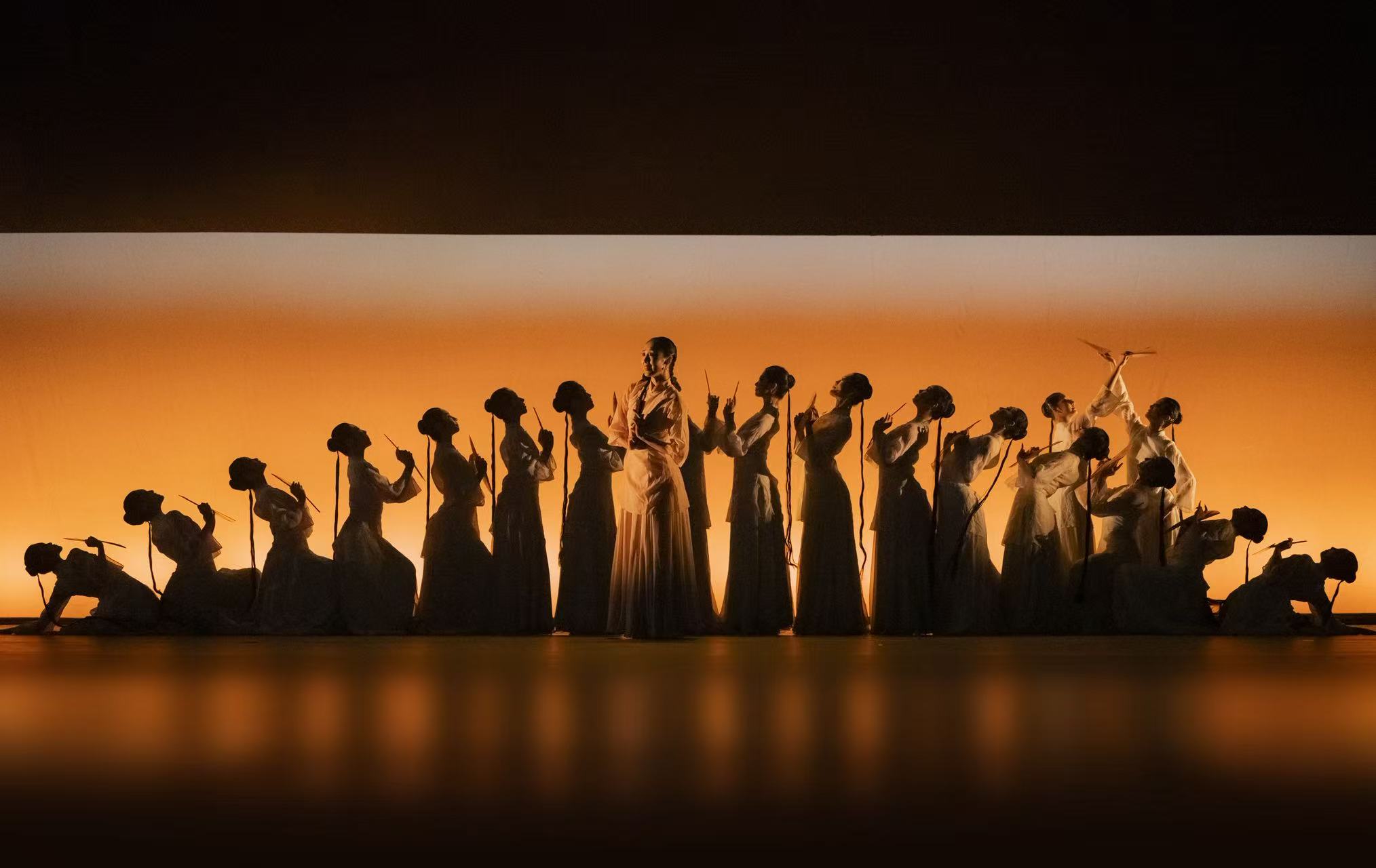 群像刻畫(huà)也更為鮮明,通過(guò)更具個(gè)性的舞蹈語(yǔ)匯與細(xì)節(jié)設(shè)計(jì),不同角色的身份、性格與情感色彩得以生動(dòng)呈現(xiàn),共同織就了一幅飽滿而絢爛的時(shí)代畫(huà)卷。整場(chǎng)演出融情于舞、借藝傳心,在現(xiàn)代化舞臺(tái)的映襯下,展現(xiàn)出傳統(tǒng)文化在當(dāng)代藝術(shù)創(chuàng)作中的鮮活生命力。