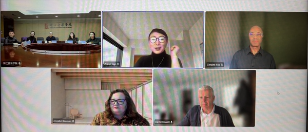 1月29日,浙江音樂學院與倫敦大學金史密斯學院線上會議順利舉行。學院院長王瑞、倫敦大學金史密斯學院校長大衛(wèi)?奧斯韋爾(David Oswell)、副校長安娜貝爾?基爾南(Annabel Kiernan)、國際合作副主管杰蘭特?福克斯(Geraint Fox),舞蹈與表演孔子學院英方院長、音樂劇專業(yè)負責人郭愛萍以及國際交流合作處、音樂劇學院(籌)相關(guān)負責人等參加會議。
