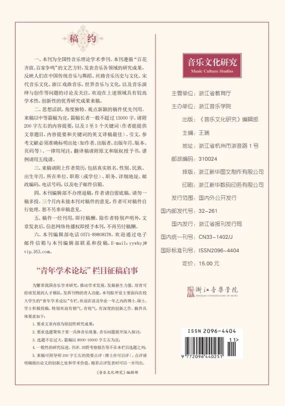 《音樂文化研究》常設 “音樂絲綢之路研究”專欄,2023年在“第七屆高校社科學術期刊質(zhì)量檢查與評估”活動中曾榮獲“全國高校社科期刊特色欄目獎”。期刊另設有“長三角區(qū)域音樂研究”“宋代音樂文化研究”“青年學術論壇”“浙江戲曲與音樂研究”“歌劇學研究”等特色專欄以及中國傳統(tǒng)音樂研究、音樂歷史與文化研究、作曲理論研究、表演與創(chuàng)作研究等學術欄目。2025年,《音樂文化研究》舉辦了“首屆音樂學青年學術論壇” 論文評選,立足學術前沿,培育后備人才,為青年學者搭建成長平臺。