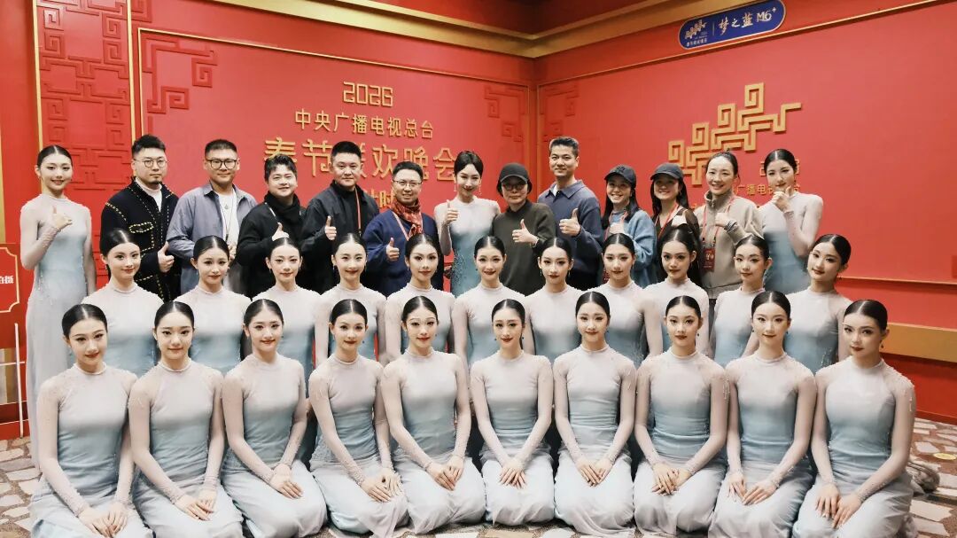 除演出《喜雨》外,舞蹈學(xué)院還有20名學(xué)生深度參與春晚主會場歌舞節(jié)目。她們與周慧敏、劉敏濤等10位藝人同臺,以柔婉身段演繹歌舞節(jié)目《立春》,在方寸舞臺間鋪展江南早春的詩意長卷;與白鹿、丁禹兮等8位青年演員同臺,呈現(xiàn)活力歌舞《串門指南》,以明快節(jié)奏與親和臺風(fēng)將新春的熱鬧與青春的朝氣灑滿熒屏。此外,學(xué)生們還參與了壓軸節(jié)目《難忘今宵》的演出。從幕后到臺前,從排練廳到央視演播廳,這群年輕的浙音人用專業(yè)與熱情,在春晚的舞臺上留下了屬于自己的青春足跡。